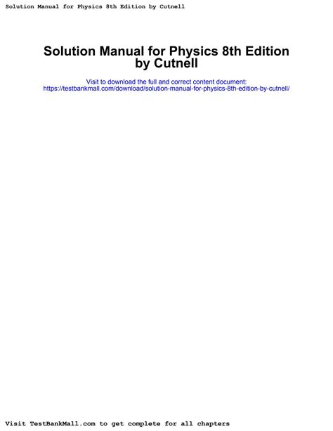Online PDF Solution Manual Physics Cutnell And Johnson 8th Paperback Gutenberg